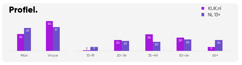 Met 44 miljoen impressies per maand en een view through rate van 91% biedt KIJK een schaalbaar bereik met focus op lokale, gratis toegankelijke content. Perfect voor adverteerders met een awareness-doelstelling die massabereik willen combineren met hoge betrokkenheid.
